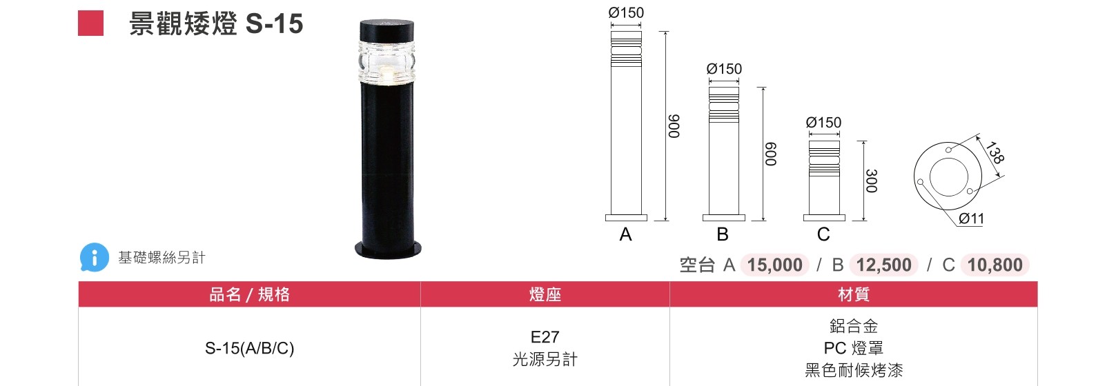 S-15景觀矮燈